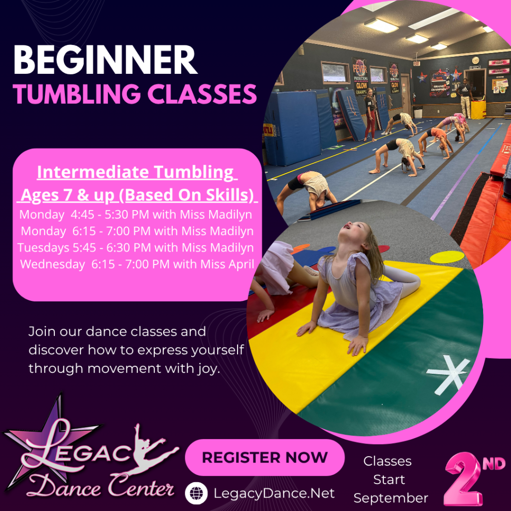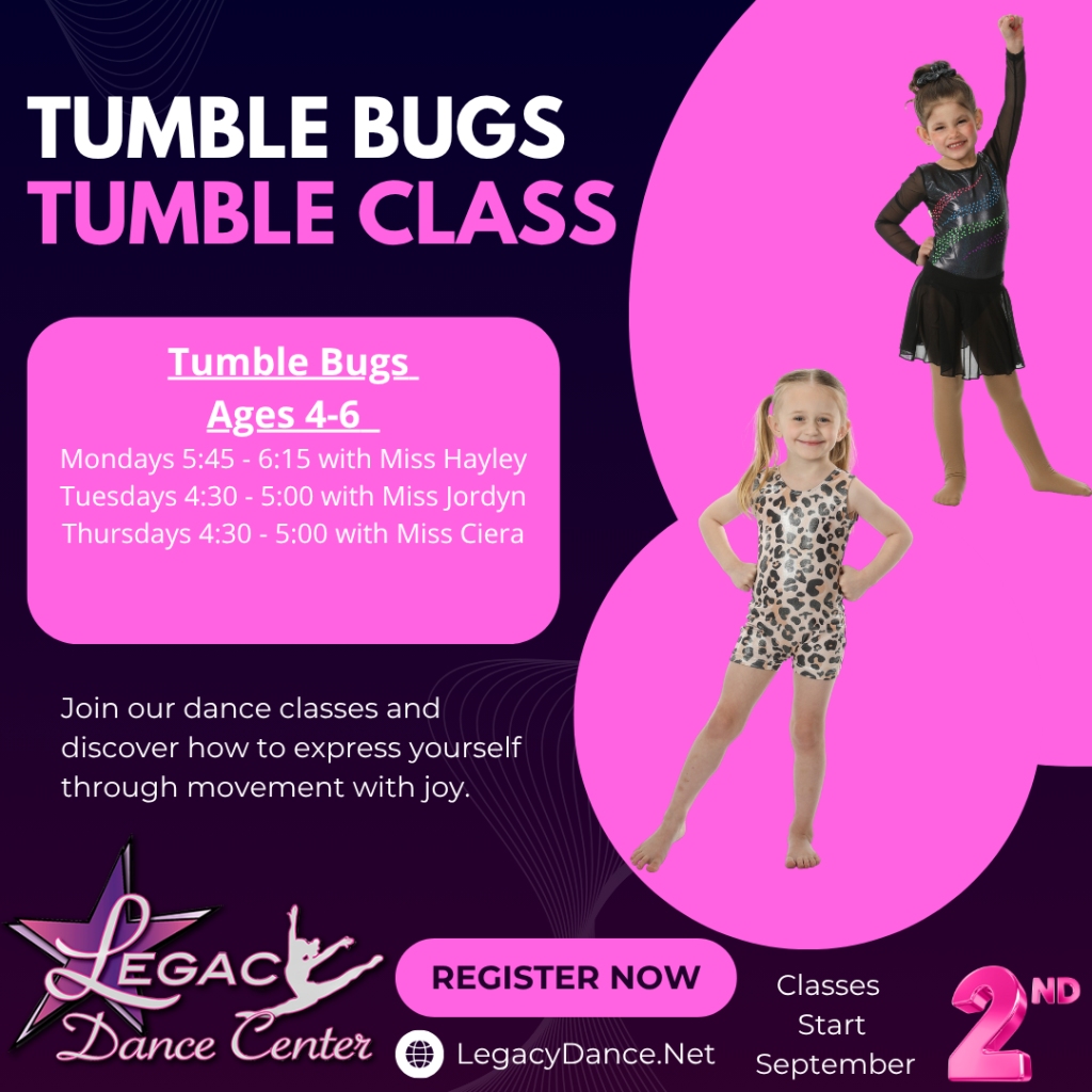 * Tumble Bugs: A class specifically for pre-schoolers designed to work on neuro-muscular activites, tumbling skills, balance, and hand-to-eye coordination. Mats, mini-tramp, balance beam and other devices will be used in the class as part the learning experience.
